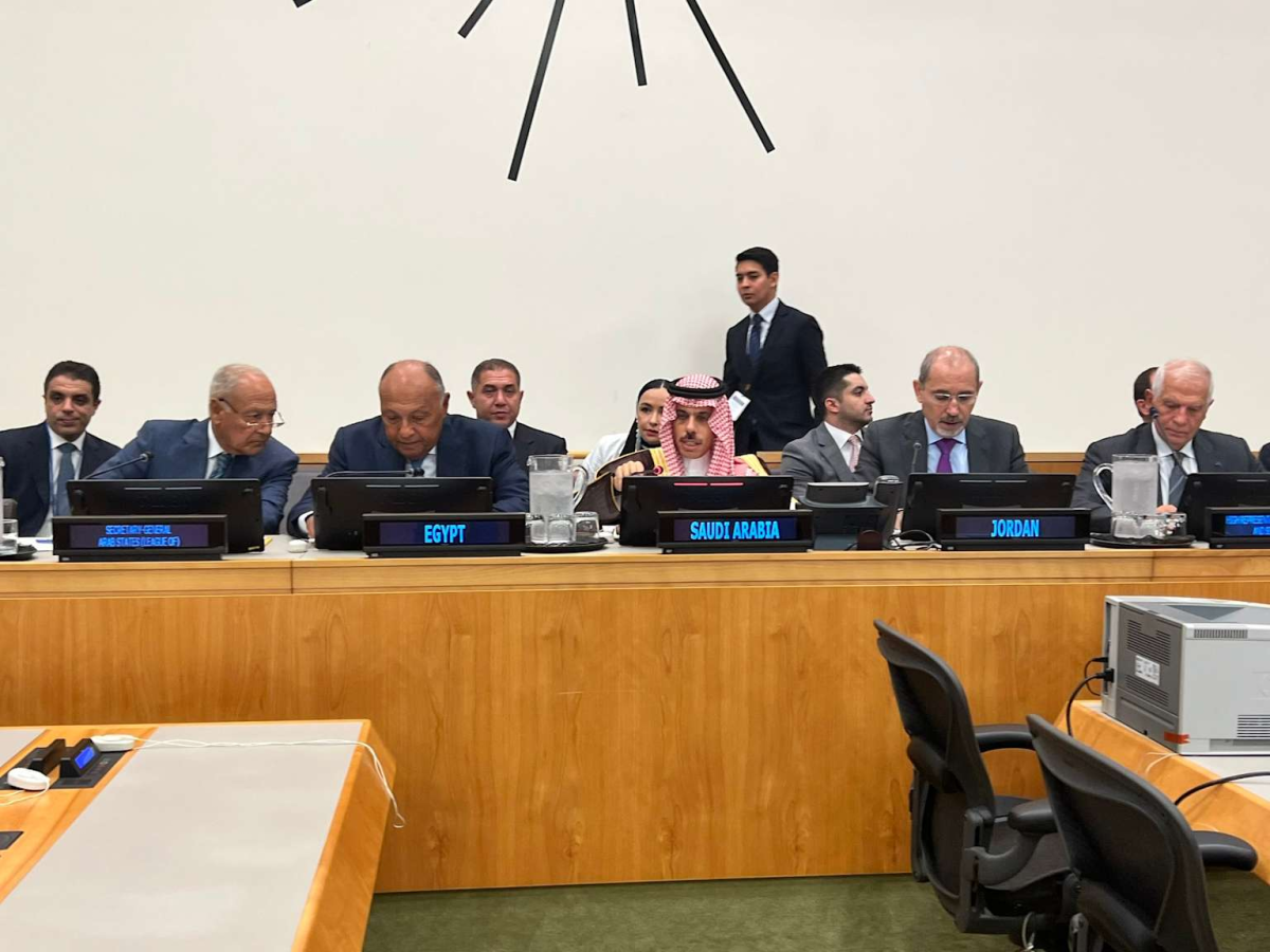 Diplomatic meeting of Arab states, including Egypt, Saudi Arabia, and Jordan, discussing regional peace.