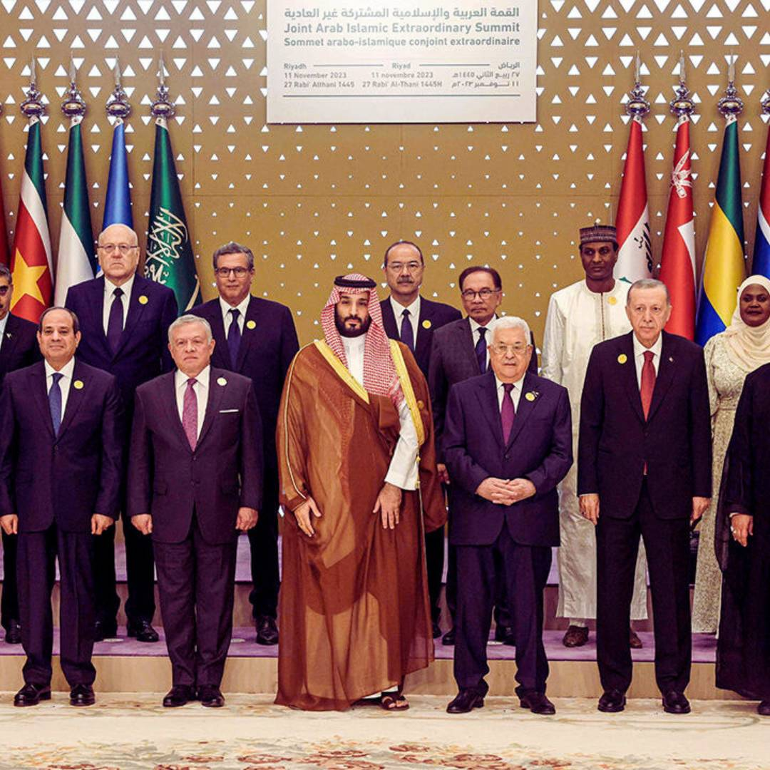 Leaders attend the Joint Arab Islamic Extraordinary Summit in Riyadh on November 11, 2023, to discuss regional issues.
